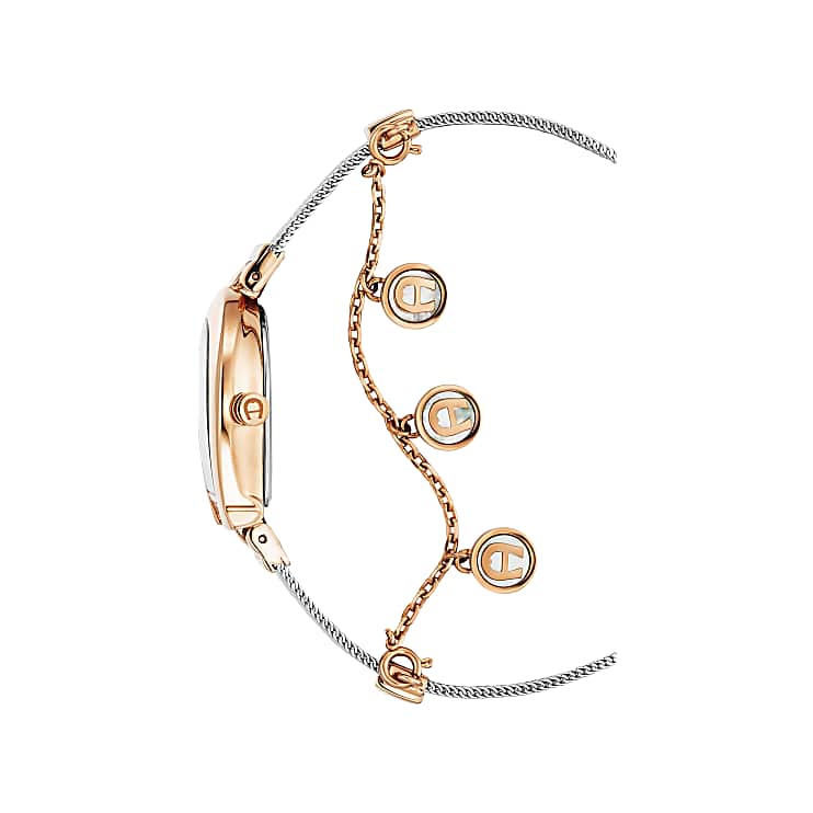 - Armband: bicolor, Edelstahl 316L mit IP Rosé, kombiniert mit Mesh